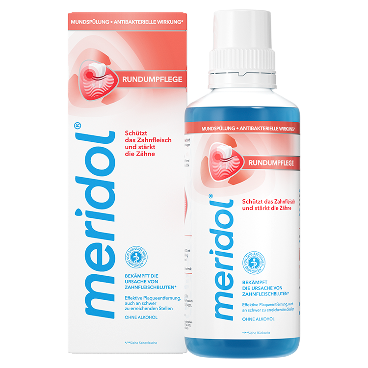Protégez vos gencives et renforcez vos dents avec le bain de bouche meridol® Soin Complet. Ce bain de bouche a été créé par des experts pour cibler et combattre la cause* du saignement occasionnel des gencives et de l'inflammation. Ce bain de bouche protège également vos gencives et renforce vos dents, tandis que sa formule efficace bi-active assure un effet antibactérien durable*. Il offre une protection contre les caries, une haleine fraîche et un renforcement de l'émail.