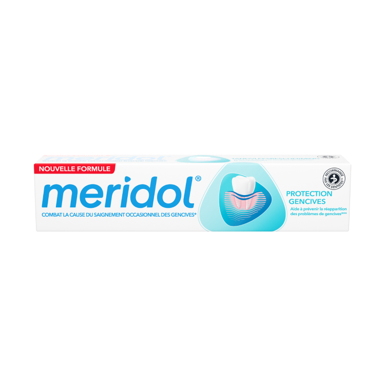 Prenez soin de vos dents et gencives grâce au dentifrice meridol® Protection Gencives. Ce dentifrice spécial gencives a été conçu par des spécialistes pour cibler et combattre rapidement** la cause principale* de l’inflammation et du saignement occasionnel des gencives. Le dentifrice protège également avant que les problèmes de gencives n’apparaissent* et sa formule bi-active douce efficace a un effet antibactérien* rapide et protège durablement.