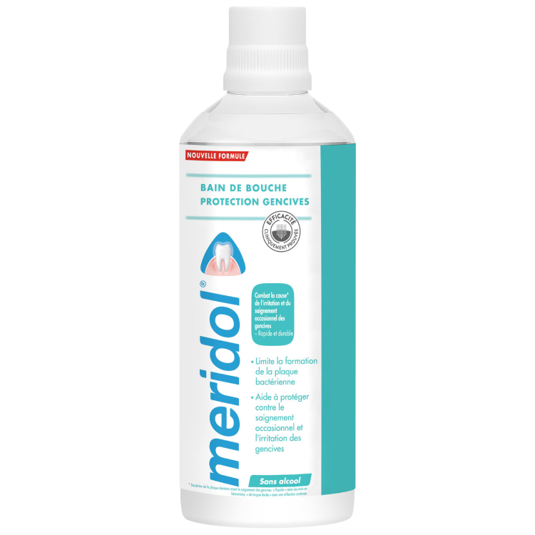 Prenez soin de vos gencives et de vos dents grâce au bain de bouche meridol® Protection Gencives. Ce bain de bouche spécial gencives a été conçu par des spécialistes pour cibler et combattre rapidement** la cause* principale de l’irritation et du saignement occasionnel des gencives. Le bain de bouche protège également avant que les problèmes de gencives n’apparaissent* et sa formule bi-active efficace a un effet antibactérien* rapide et durable**.